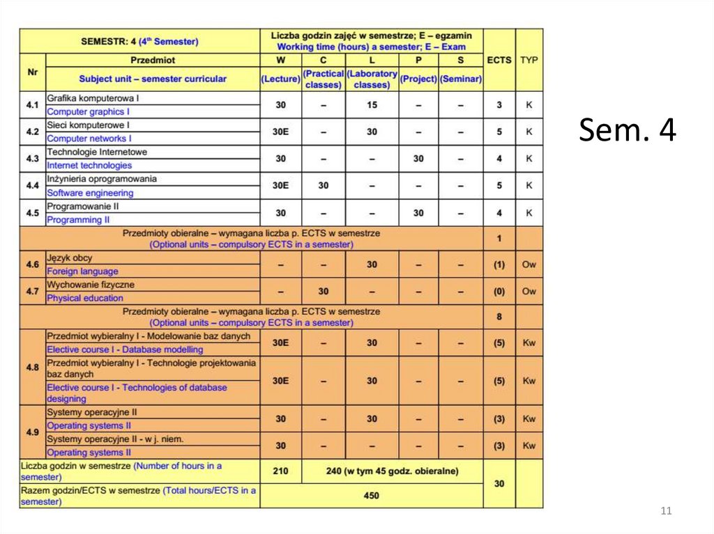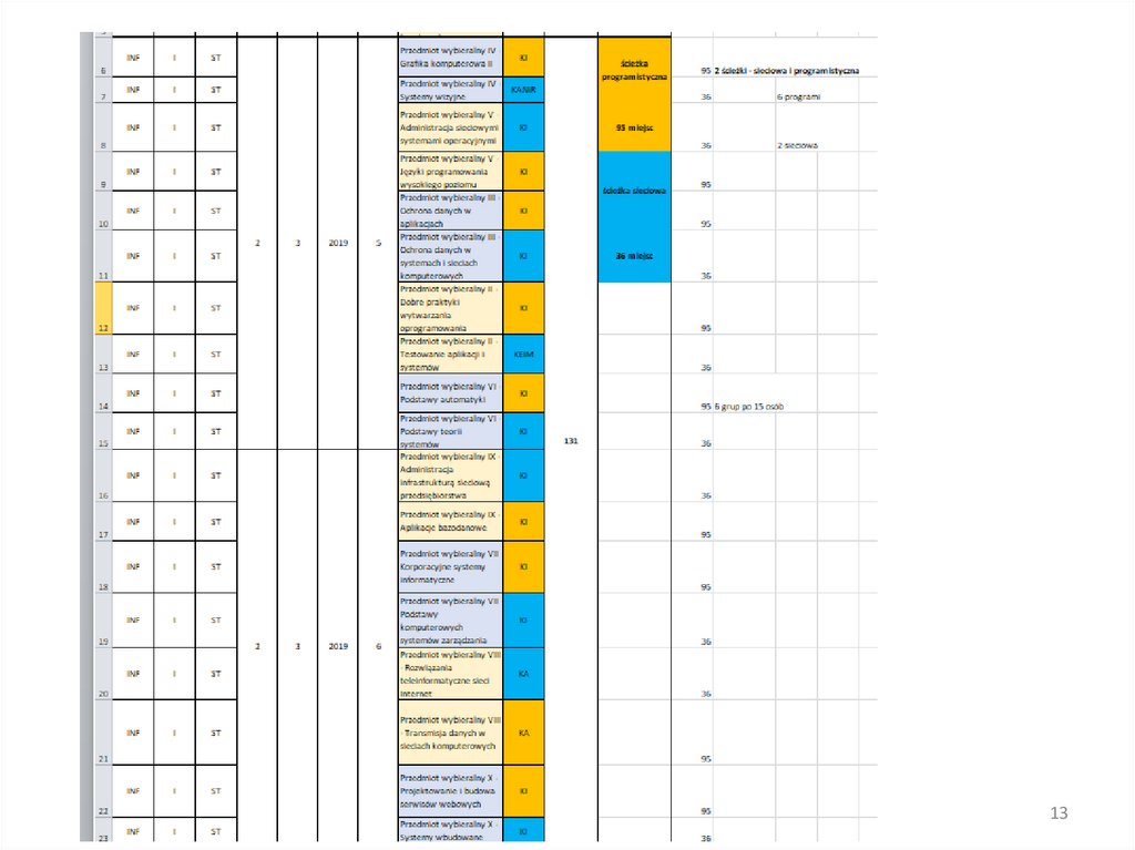 • Na 6 i 7 semestrze wybór kierunków dyplomowania,
