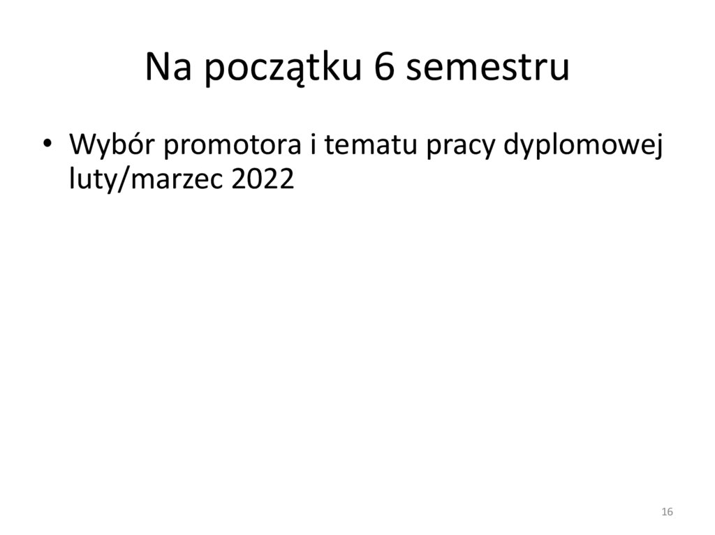 Na początku 6 semestru• Wybór promotora i tematu pracy dyplomowej