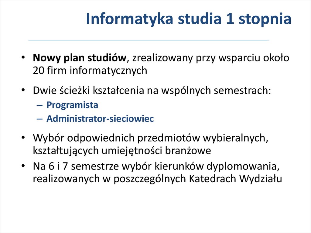 Informatyka studia 1 stopnia• Nowy plan studiów, zrealizowany przy wsparciu około