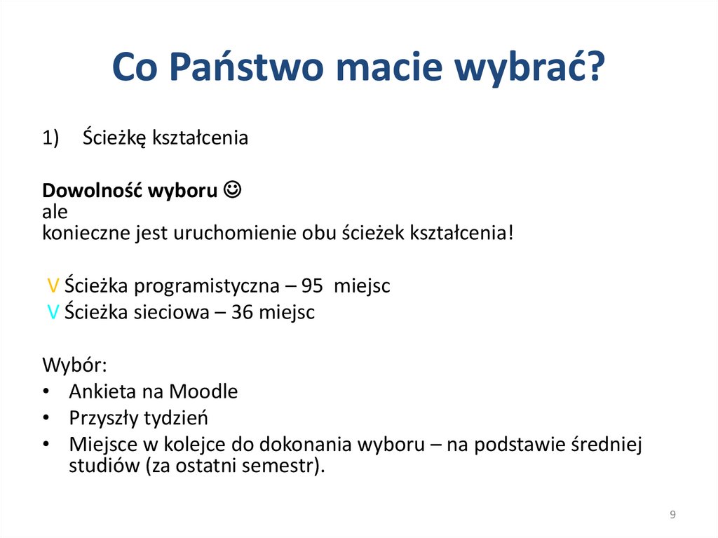 • Dwie ścieżki kształcenia na wspólnych semestrach: