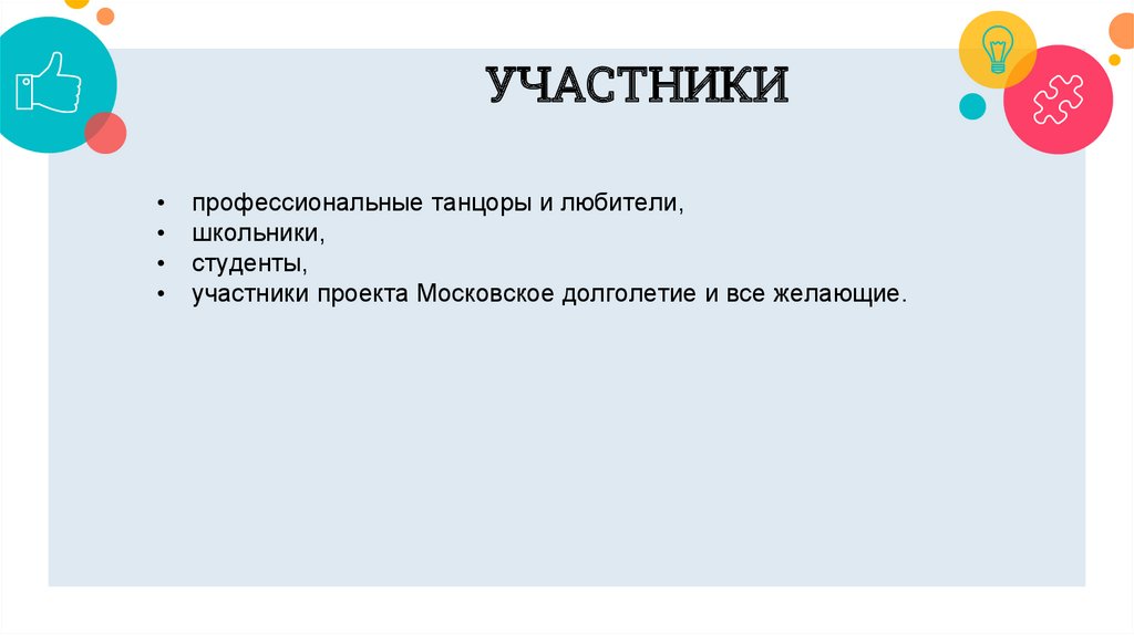 УЧАСТНИКИпрофессиональные танцоры и любители,