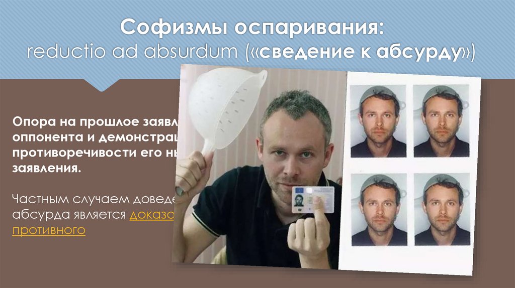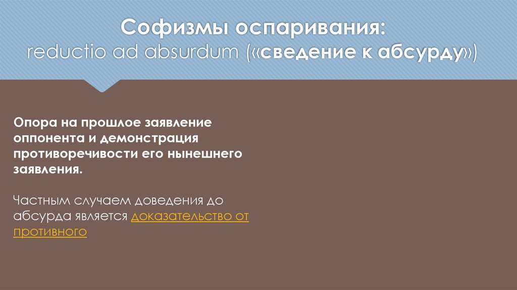 Софизмы оспаривания:reductio ad absurdum («сведение к абсурду»)