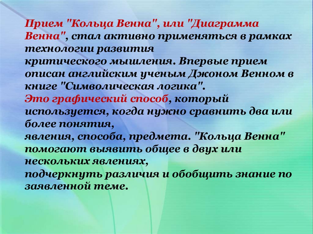 Прием "Кольца Венна", или "ДиаграммаВенна", стал активно применяться в рамках