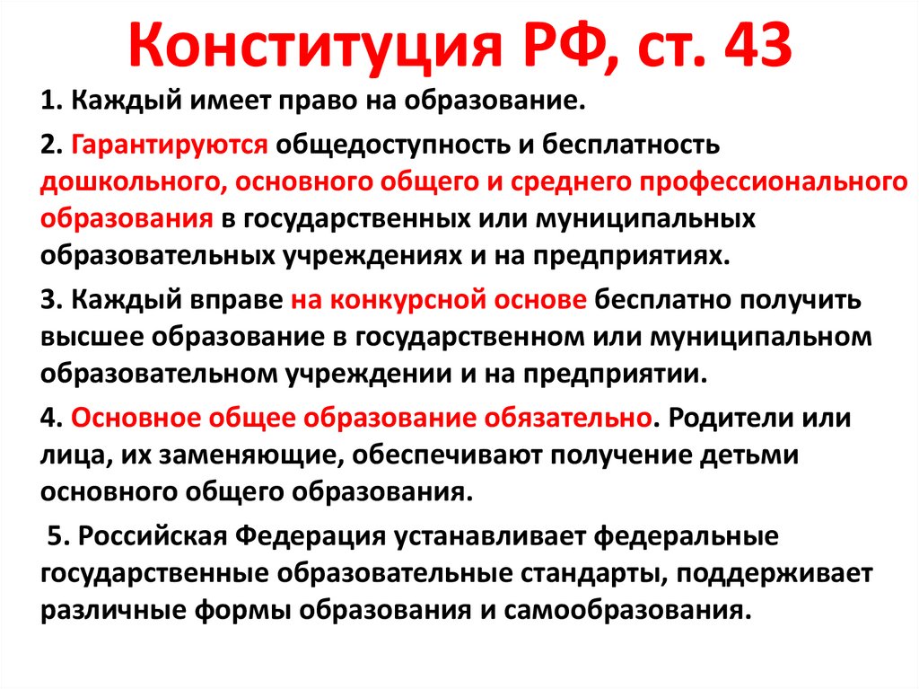 Конституция РФ, ст. 431. Каждый имеет право на образование.