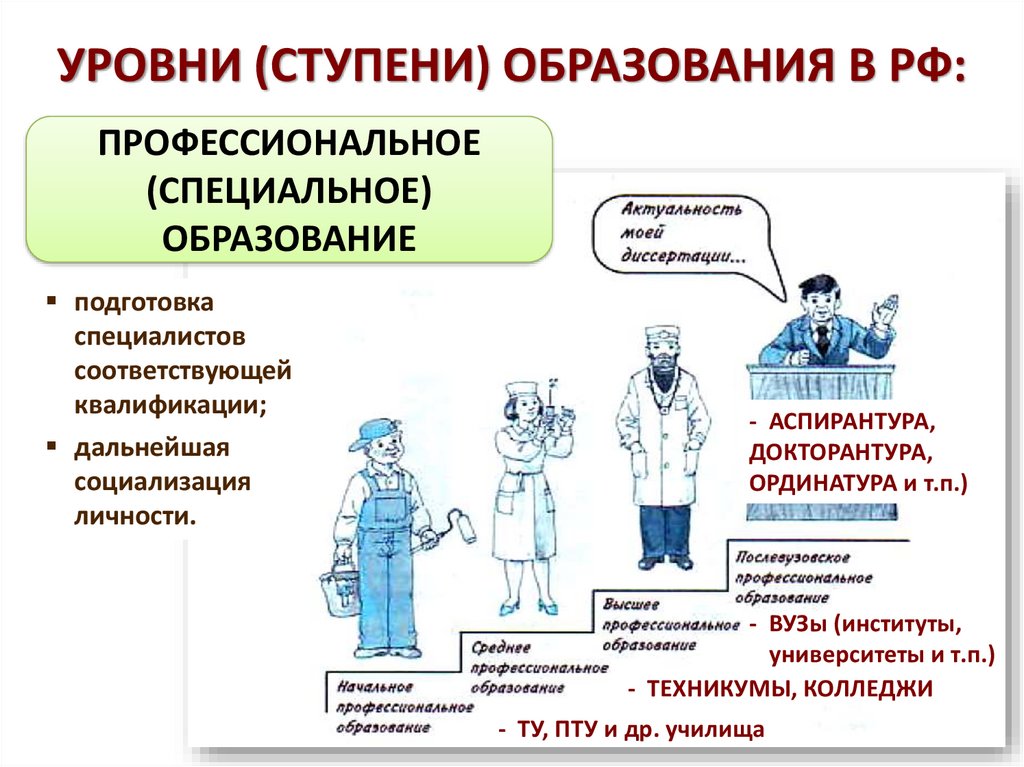 УРОВНИ (СТУПЕНИ) ОБРАЗОВАНИЯ В РФ:ПРОФЕССИОНАЛЬНОЕ