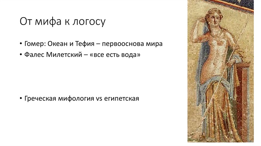 От мифа к логосу• Гомер: Океан и Тефия – первооснова мира