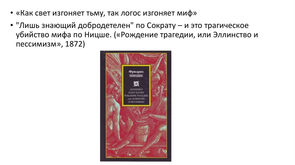 убийство мифа по Ницше. («Рождение трагедии, или Эллинство и