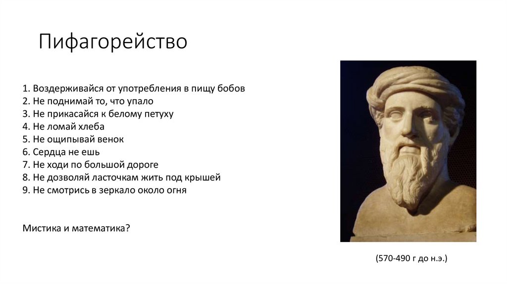 Пифагорейство1. Воздерживайся от употребления в пищу бобов
