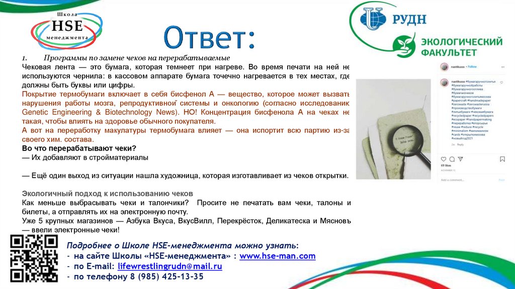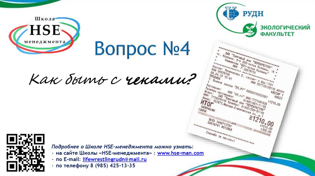 Как быть с чеками?Подробнее о Школе HSE-менеджмента можно узнать: