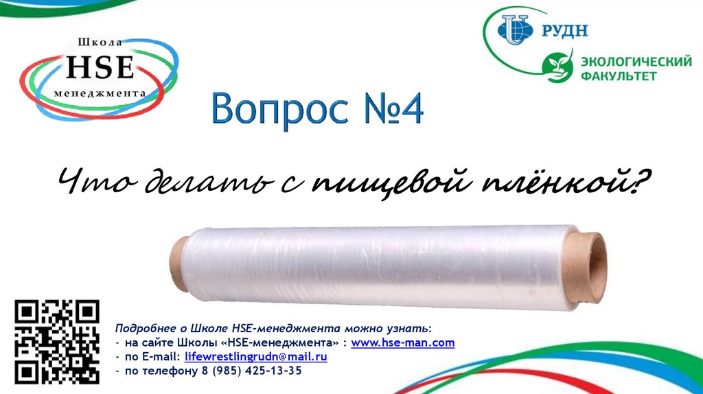 Что делать с пищевой плёнкой?Подробнее о Школе HSE-менеджмента можно узнать: