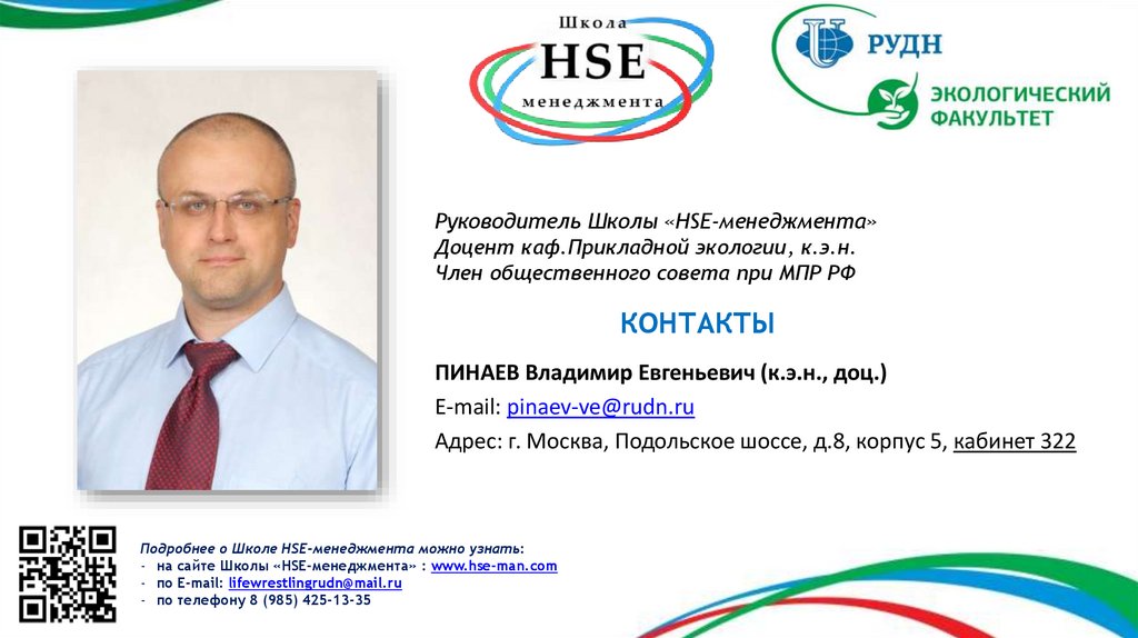 Руководитель Школы «HSE-менеджмента»Доцент каф.Прикладной экологии, к.э.н.