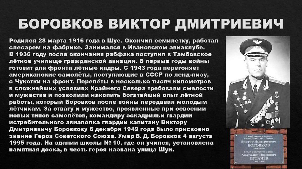 памятная доска, в честь героя названа улица Шуи.