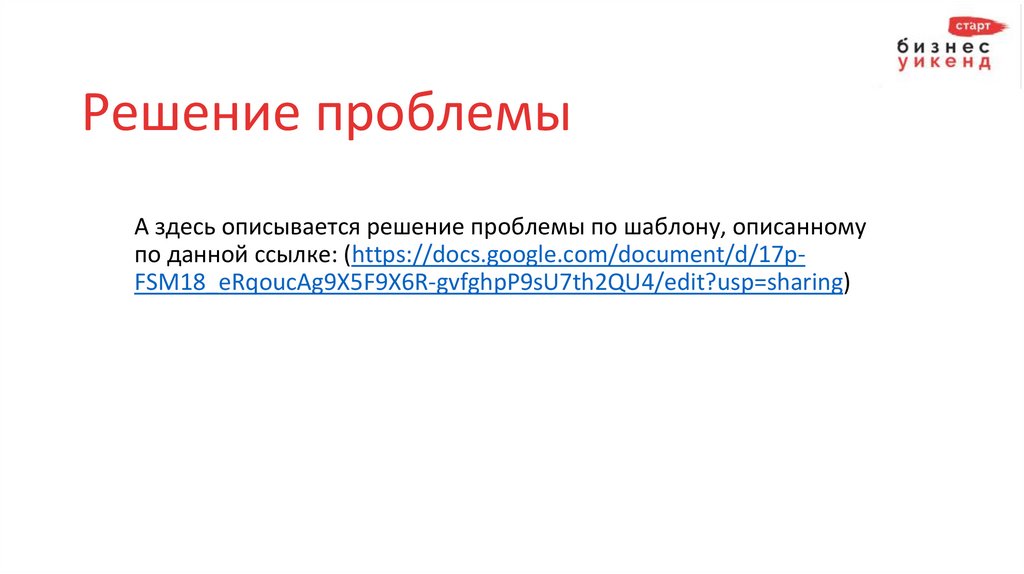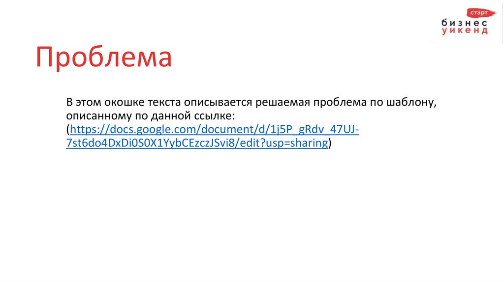 ПроблемаВ этом окошке текста описывается решаемая проблема по шаблону,