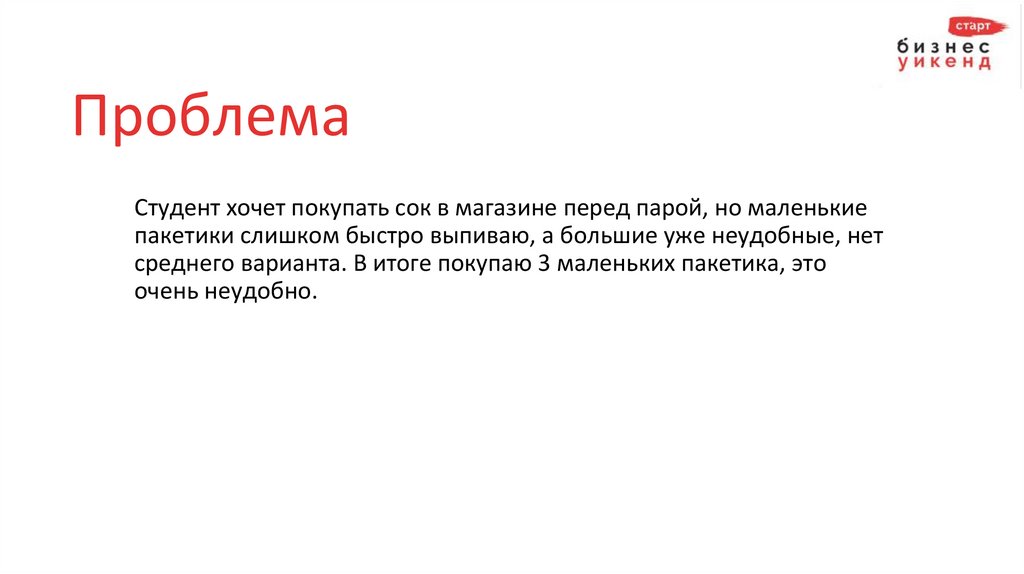 ПроблемаСтудент хочет покупать сок в магазине перед парой, но маленькие