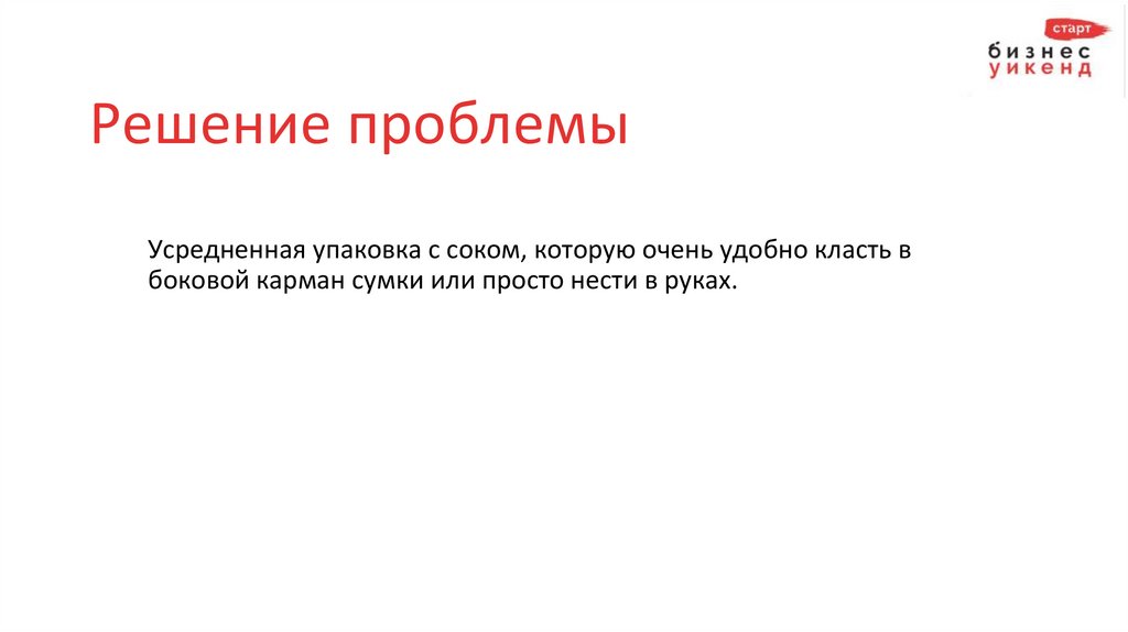 Решение проблемыУсредненная упаковка с соком, которую очень удобно класть в