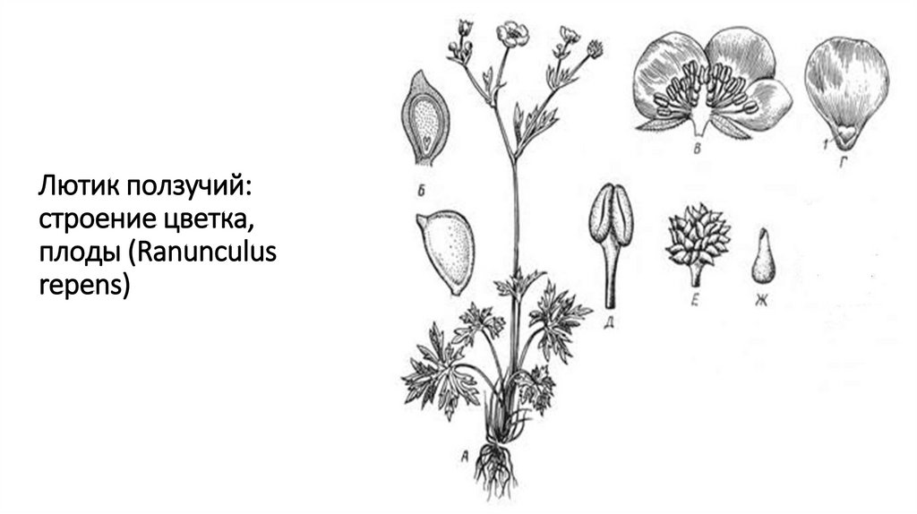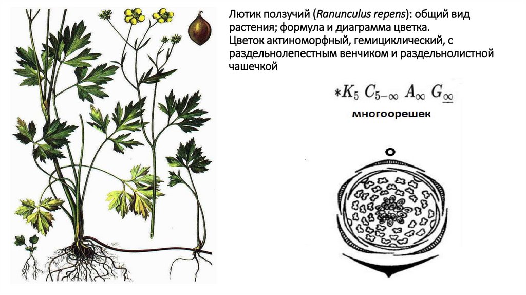 Лютик ползучий (Ranunculus repens): общий видрастения; формула и диаграмма цветка.