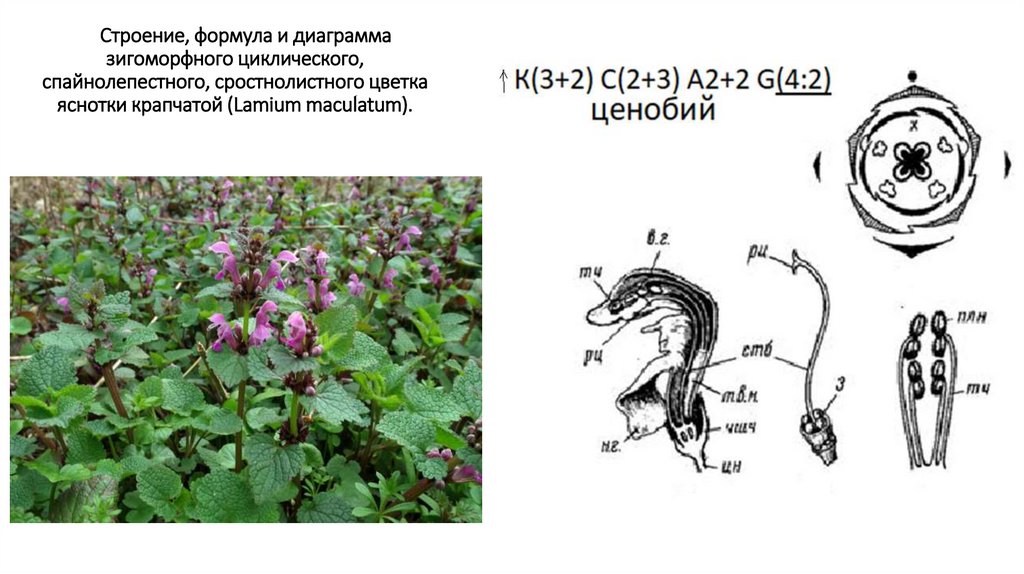 Строение, формула и диаграмма зигоморфногоциклического, раздельнолепестного, сростнолистного