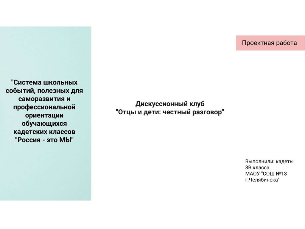 Дискуссионный клуб "Отцы и дети: честный разговор"
