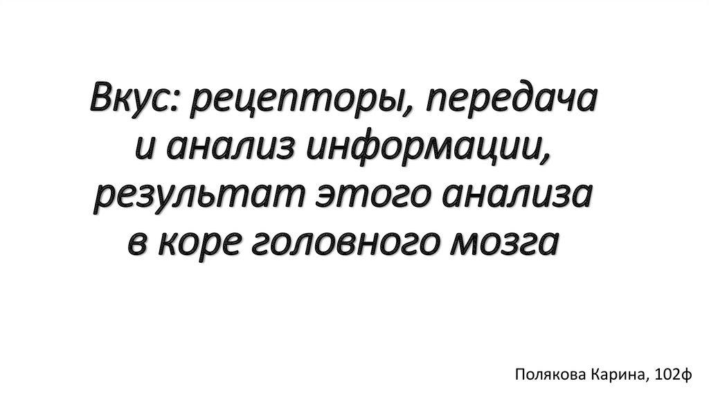 Вкус: рецепторы, передача и анализ информации, результат этого анализа в коре головного мозга