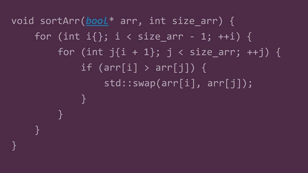 Написать функциюсортировки массива bool
