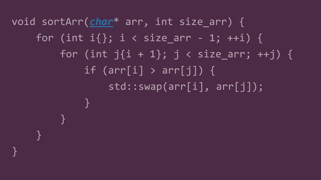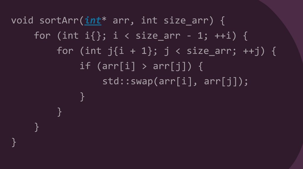 for (int j{i + 1}; j < size_arr; ++j) {