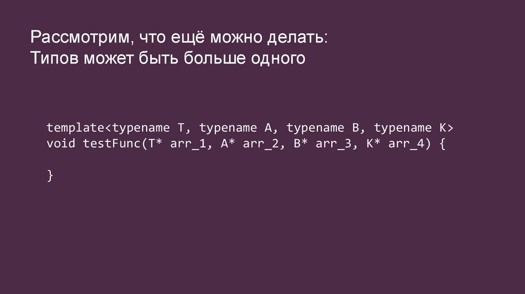 Рассмотрим, что ещё можно делать:Типов может быть больше одного
