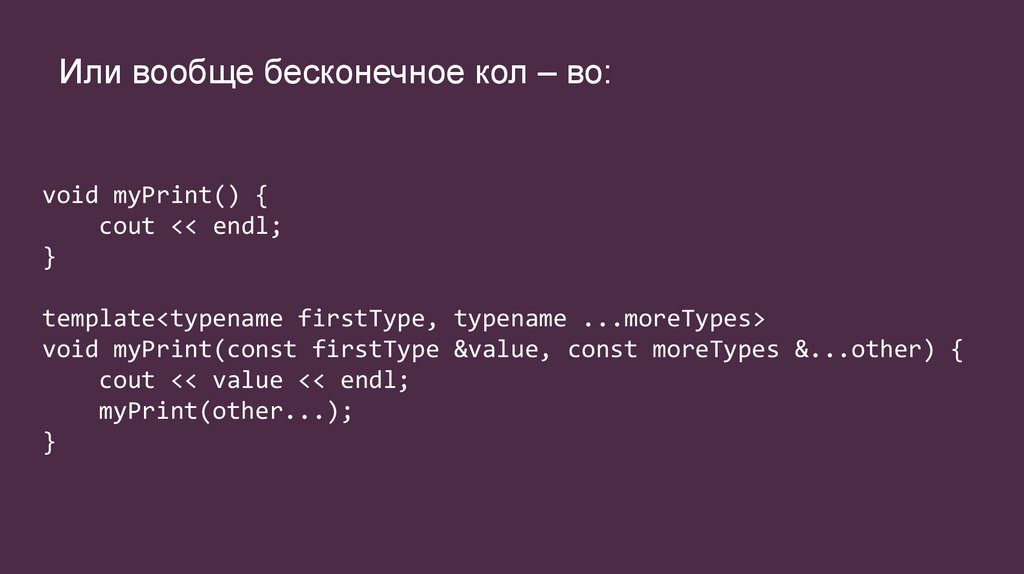 Или вообще бесконечное кол – во:void myPrint() {