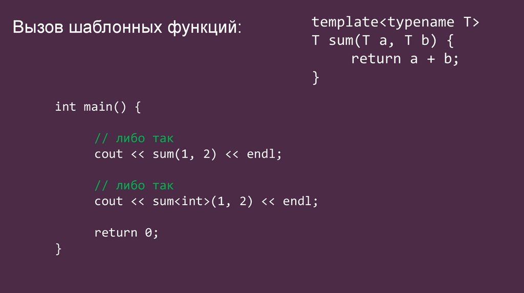 Вызов шаблонных функций:template<typename T>
