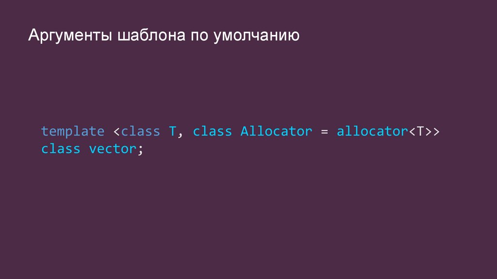 Аргументы шаблона по умолчаниюtemplate <class T, class Allocator = allocator<T>>