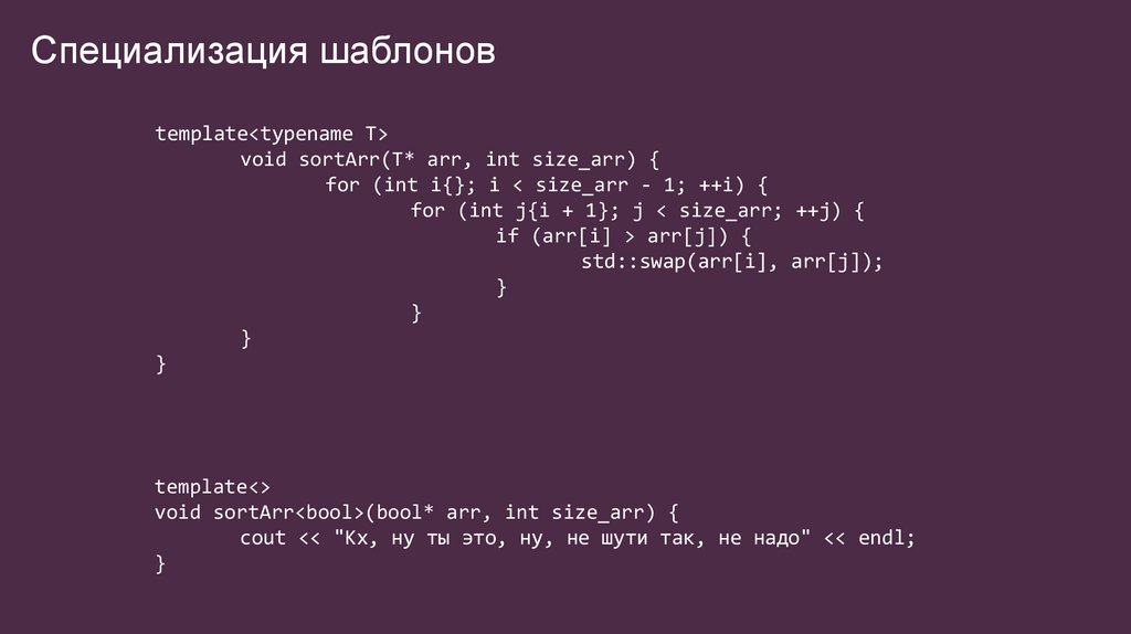 Специализация шаблоновtemplate<typename T>