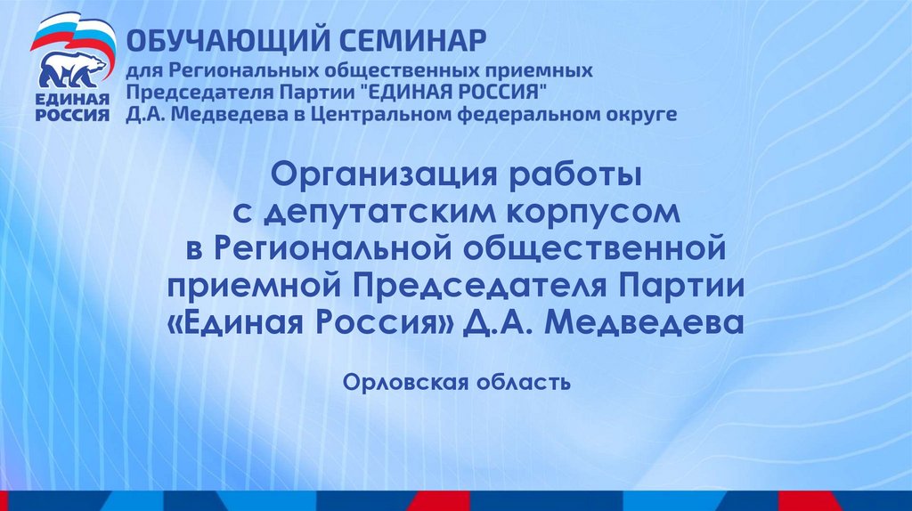 Организация работы с депутатским корпусом. «Единая Россия», Орловская область