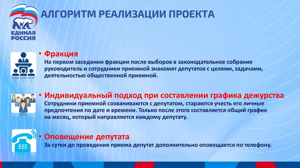 • Подведение итогов дежурстваЕжемесячно на заседаниях фракций подводятся итоги дежурства в общественной приемной,