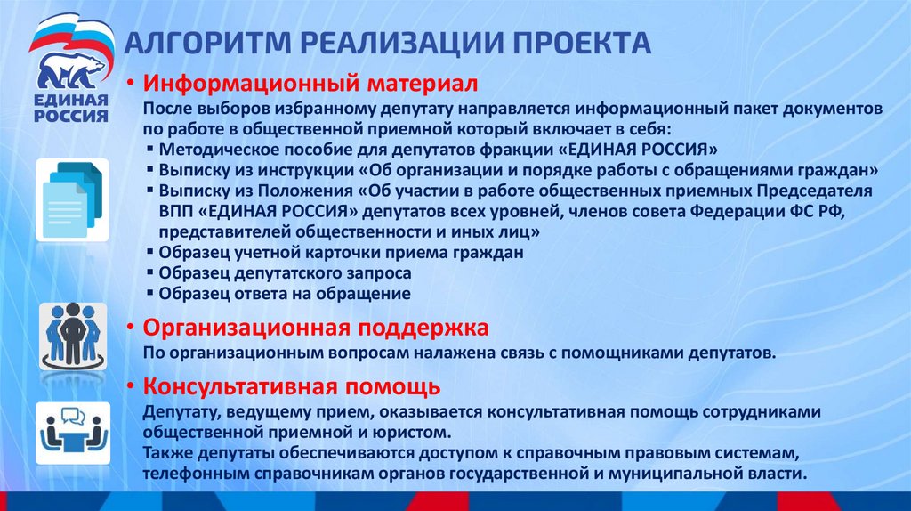 • Информационный материалПосле выборов избранному депутату направляется информационный пакет документов