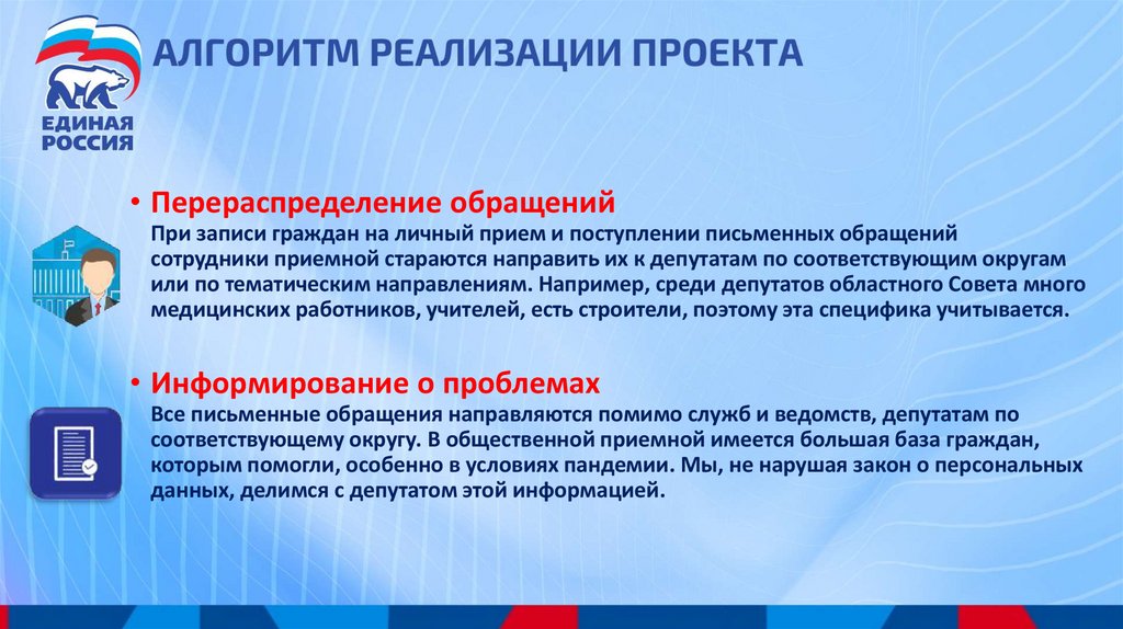 соответствующему округу. В общественной приемной имеется большая база граждан,