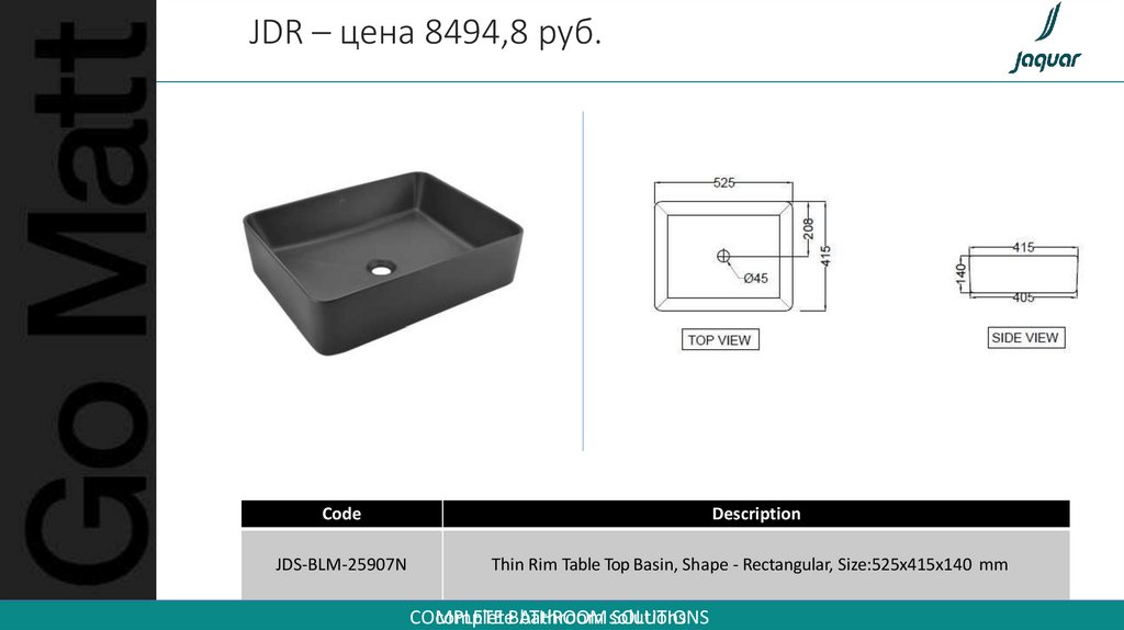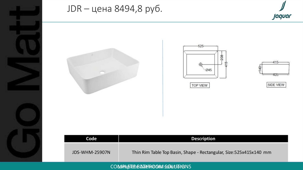 Thin Rim Table Top Basin, Shape - Rectangular, Size:525x415x140 mm