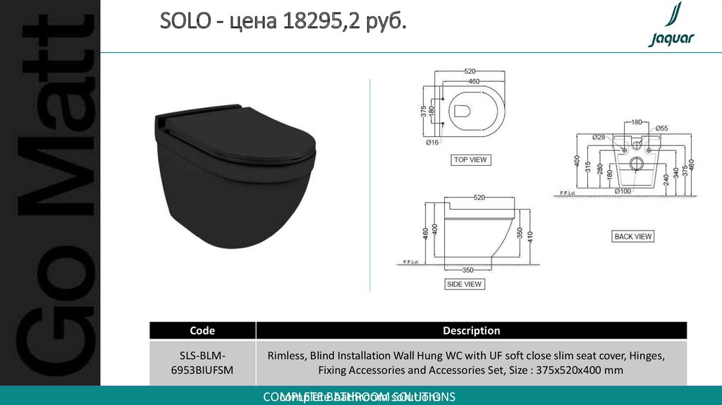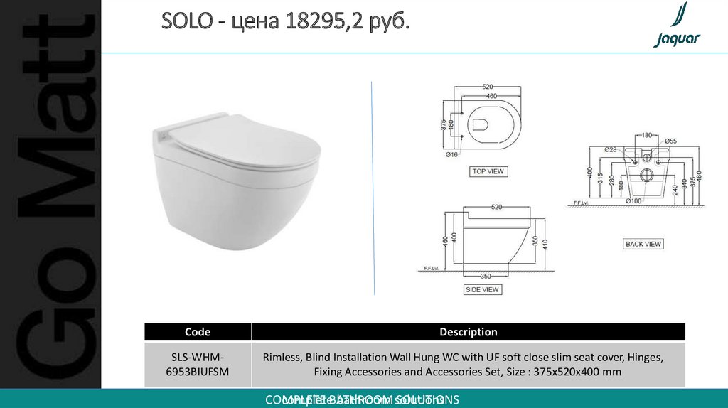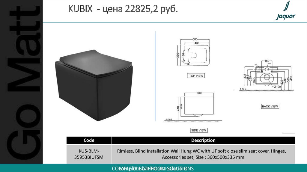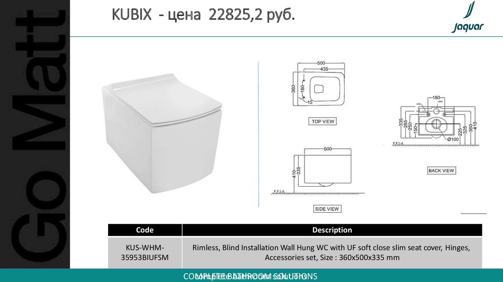 Rimless, Blind Installation Wall Hung WC with UF soft close slim seat cover, Hinges,
