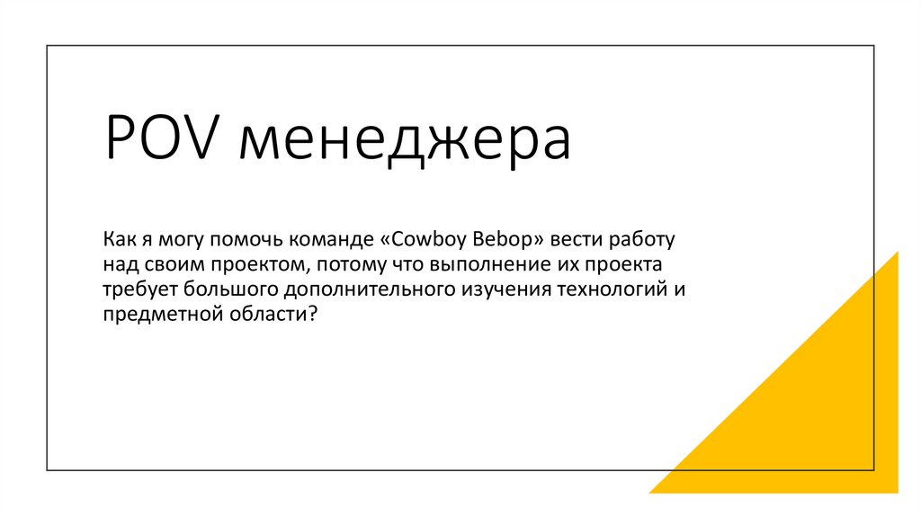 POV менеджераКак я могу помочь команде «Cowboy Bebop» вести работу