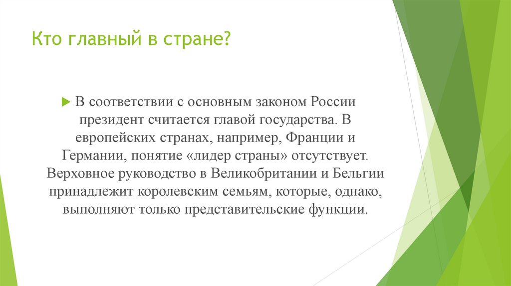 Кто главный в стране?В соответствии с основным законом России