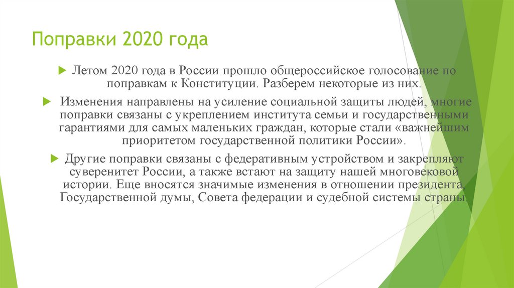 Поправки 2020 годаЛетом 2020 года в России прошло общероссийское голосование по