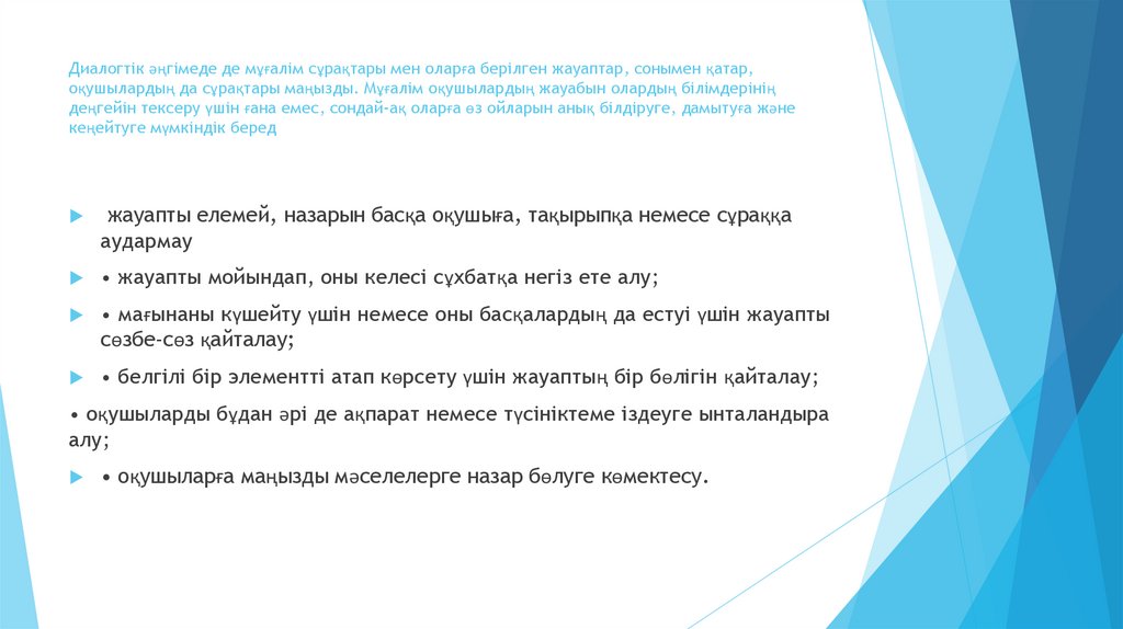 оқушылар қысқа жауап беретін сұрақтармен салыстырғанда, диалогтік сұхбаттасу мұғалімдер де,