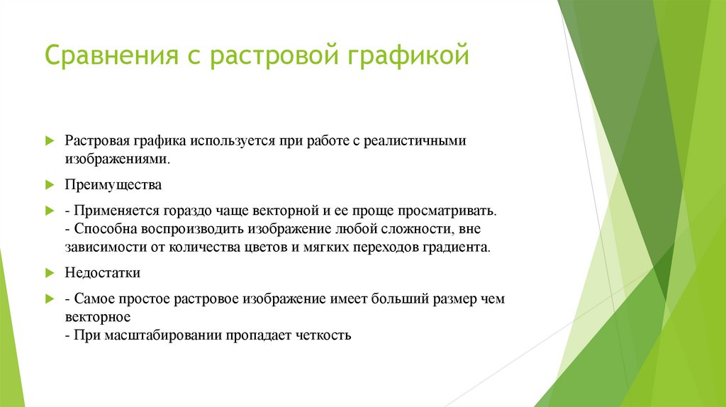 Сравнения с растровой графикойРастровая графика используется при работе с реалистичными