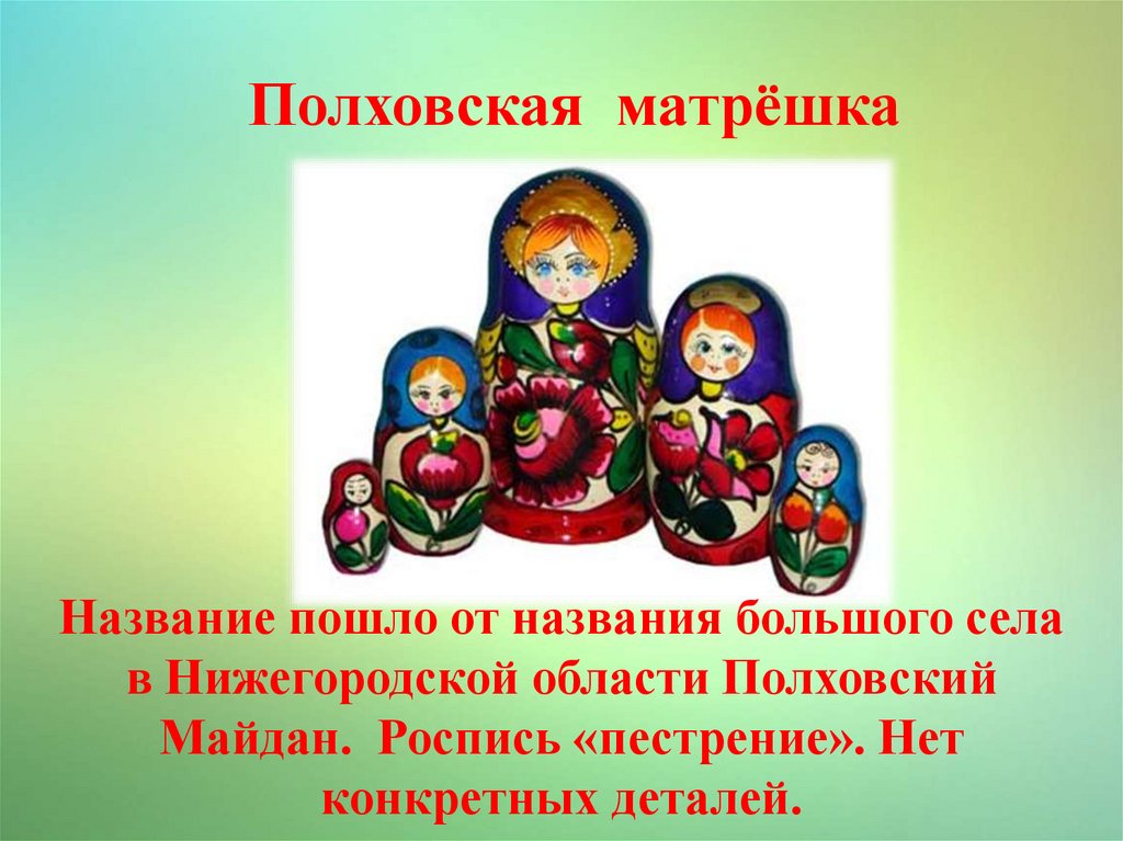 Полховская матрёшкаНазвание пошло от названия большого села