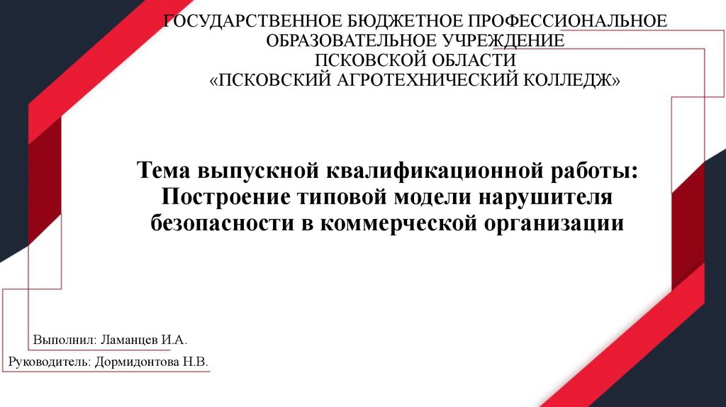 Построение типовой модели нарушителя безопасности в коммерческой организации