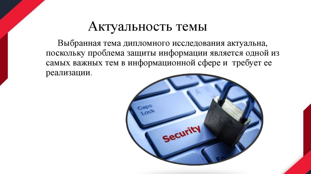 Актуальность темыВыбранная тема дипломного исследования актуальна,