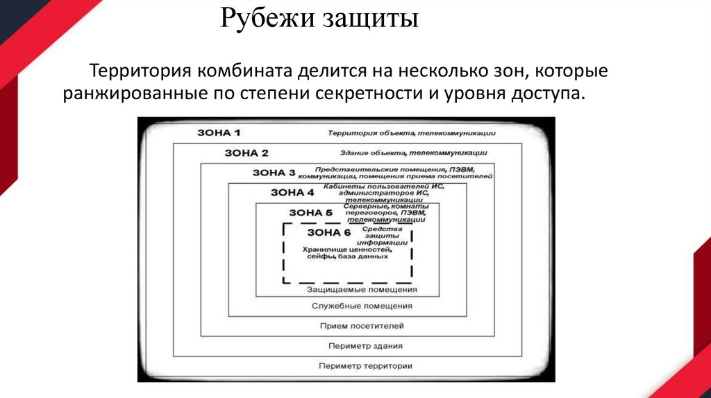 Рубежи защитыТерритория комбината делится на несколько зон, которые