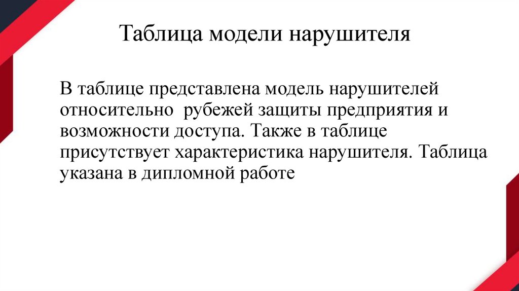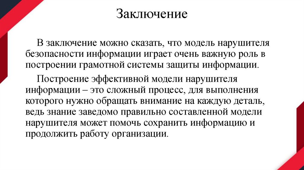ЗаключениеВ заключение можно сказать, что модель нарушителя
