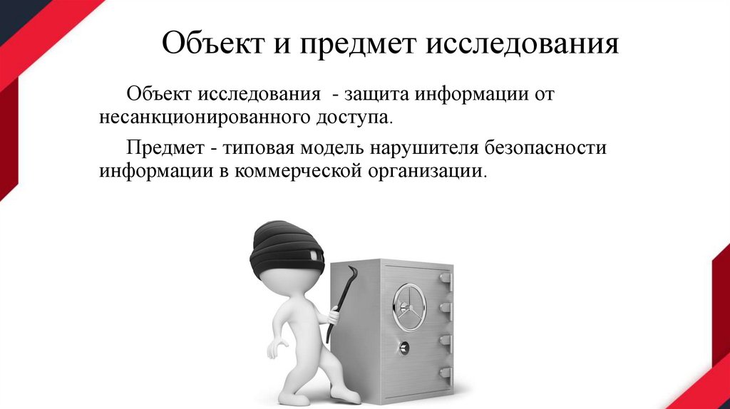 Объект и предмет исследованияОбъект исследования - защита информации от