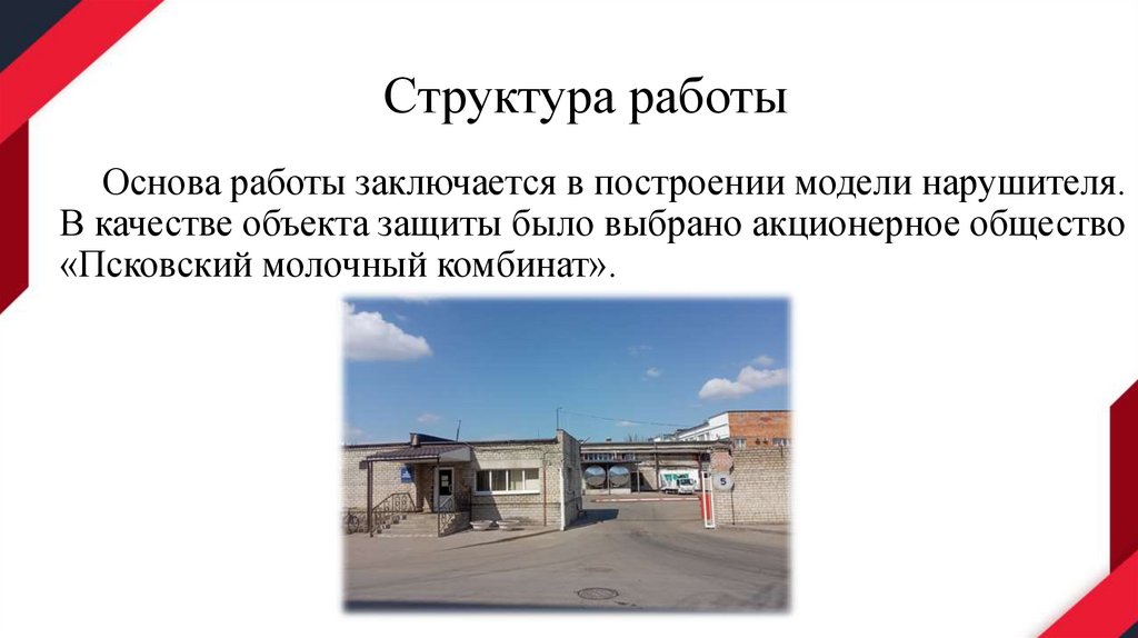 Структура работыОснова работы заключается в построении модели нарушителя.