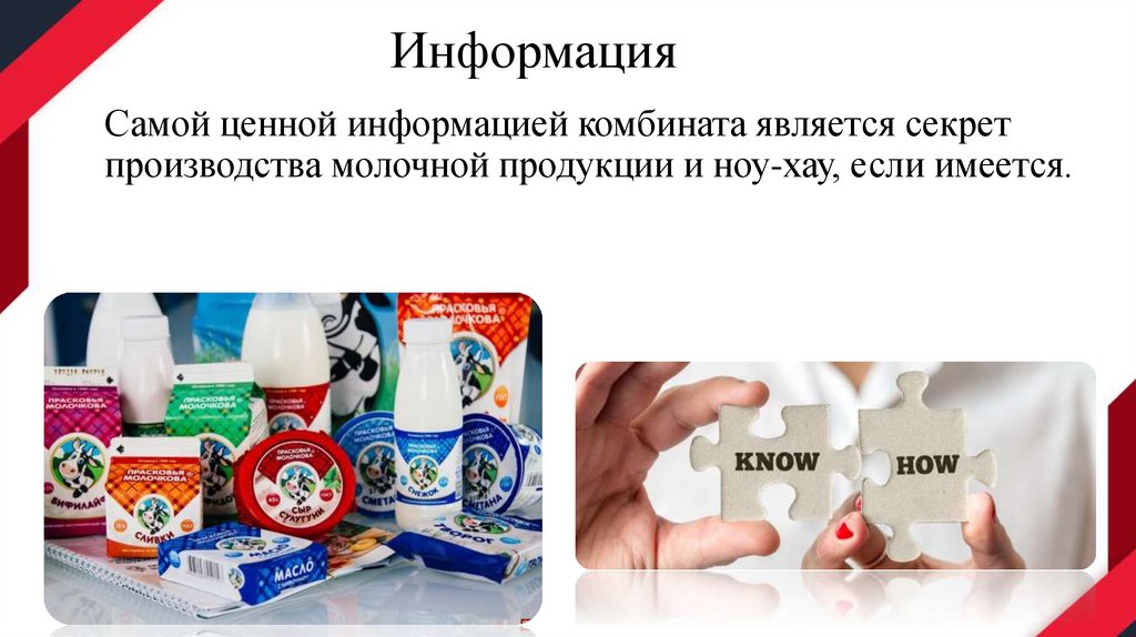 ИнформацияСамой ценной информацией комбината является секрет