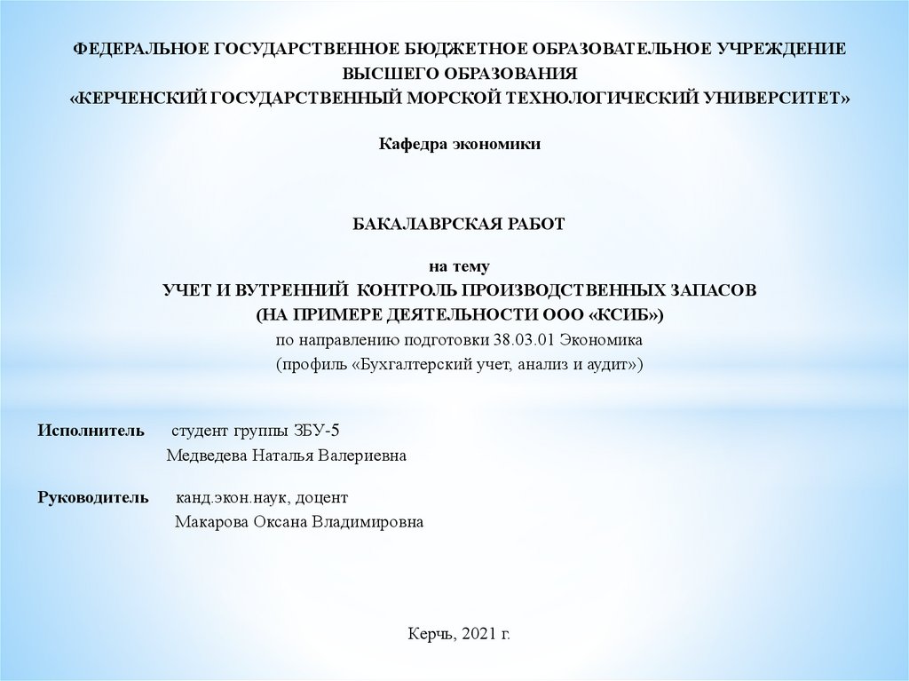 УЧЕТ И ВУТРЕННИЙ КОНТРОЛЬ ПРОИЗВОДСТВЕННЫХ ЗАПАСОВ